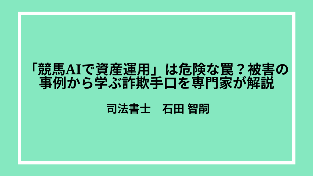 「競馬AI」や「競馬投資」を謳う詐欺の被害は、決して他人事ではありません。