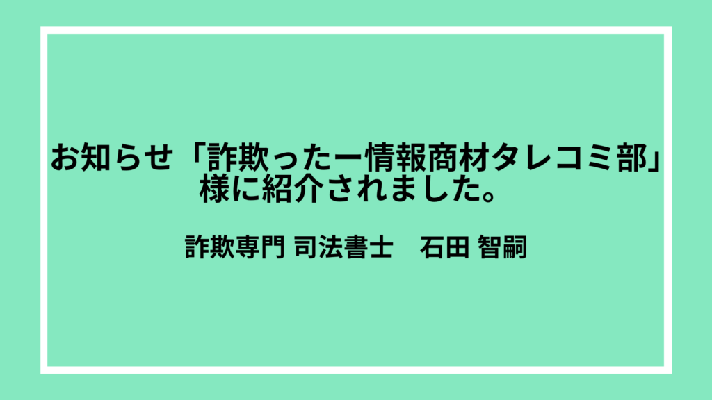 この度、当事務所が「SNSを使った副業詐欺の正しい相談先とは?騙されてもお金は取り戻せる?」というテーマで監修した記事が、情報商材や副業詐欺の被害情報を提供するサイト「詐欺ったー -情報商材 タレコミ部-」に掲載されました。