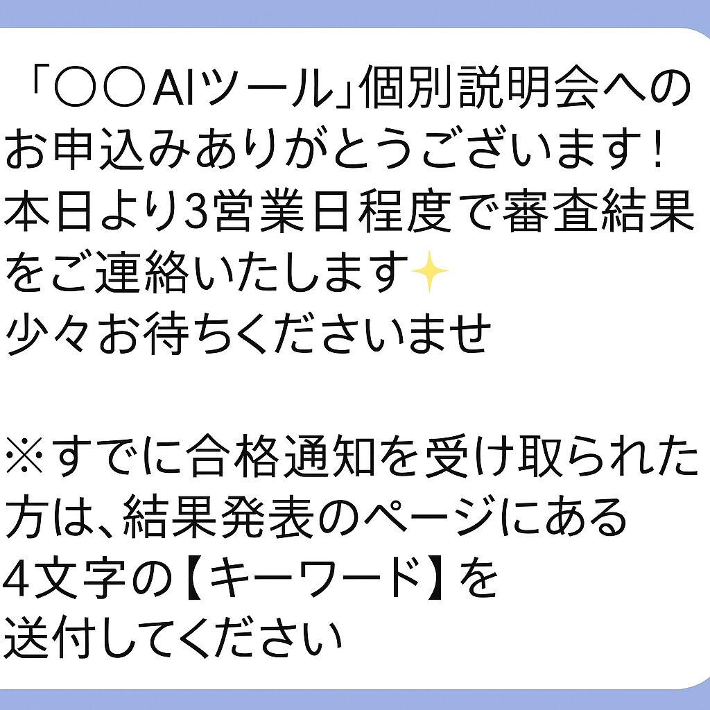 また、希望すれば全員AIツールが入手できるわけでなく、審査通過が必要ということで、審査決定を待つ必要がある旨を説明を受けました。